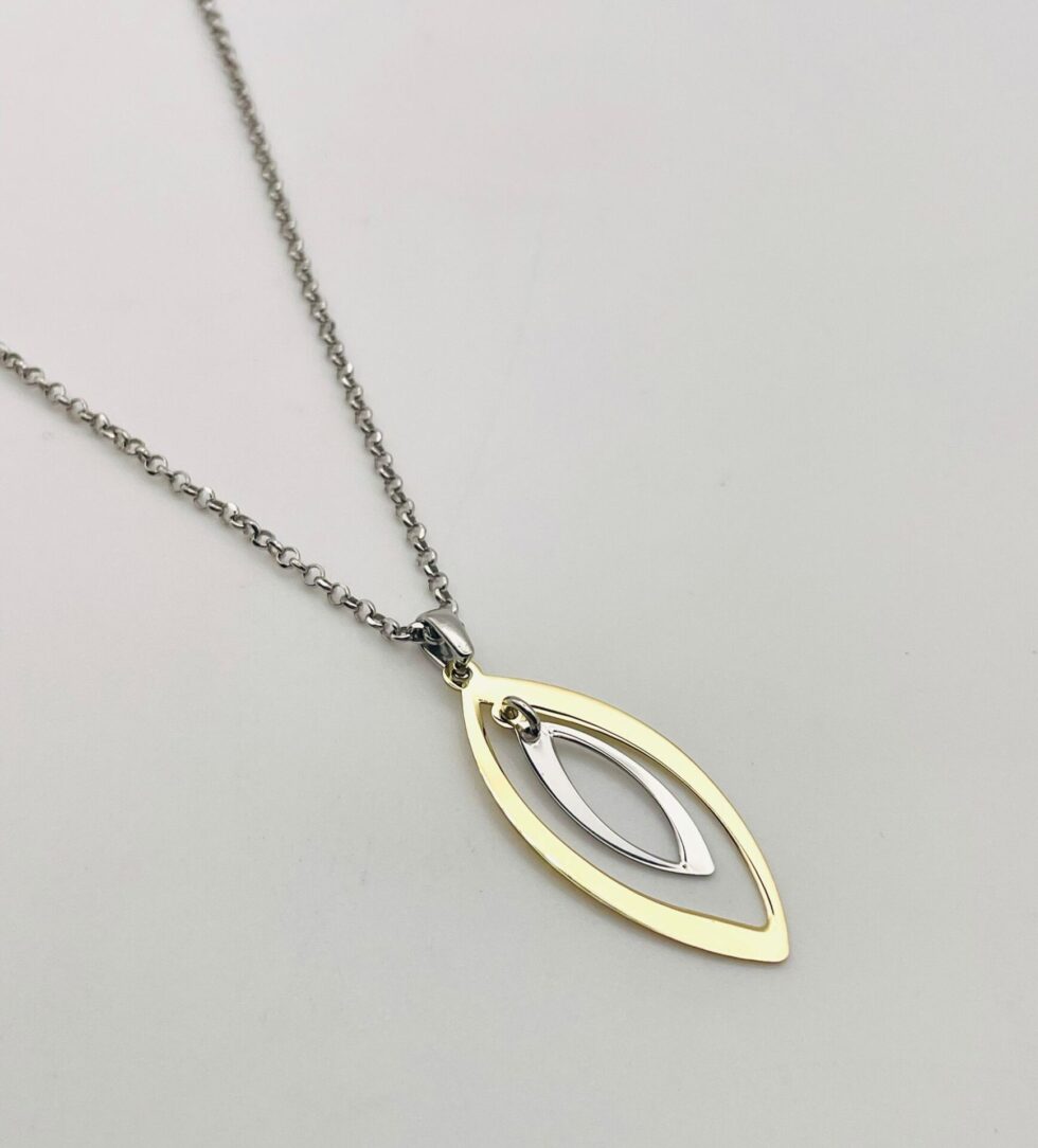 El collar Milán consta de una fina cadena en plata de ley y de un bonito colgante con dos acabados, uno en plata chapada en oro de 18kL y el otro en plata bañada en rodio.