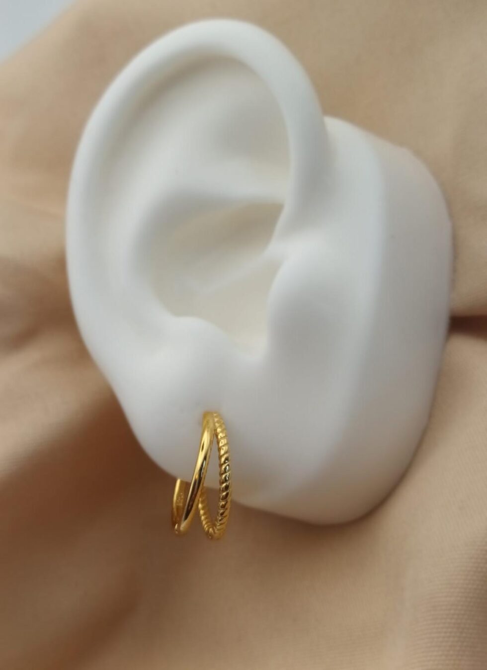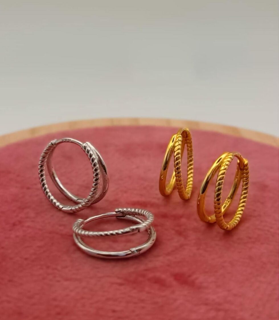 Pendiente Aro en Plata de Ley Chapado en Oro de 18K con Efecto Doble