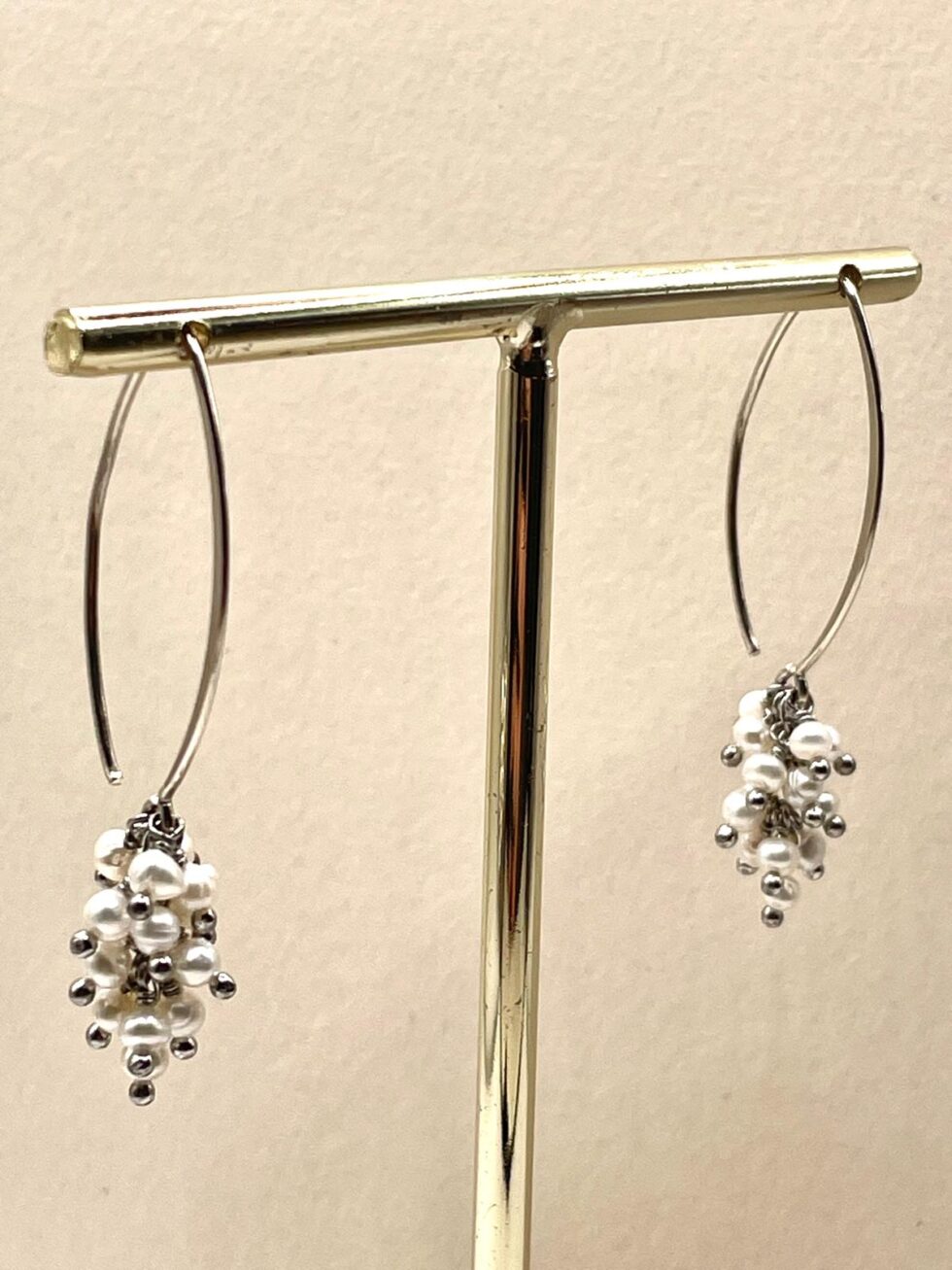 El pendiente Stella de plata con perlas es una joya elegante y original, diseñada para aportar un toque especial a cualquier look. Elaborado con un pendiente tipo gancho y un colgante compuesto por perlas de 3 mm montadas con ajugas de plata y formando un pequeño racimo.